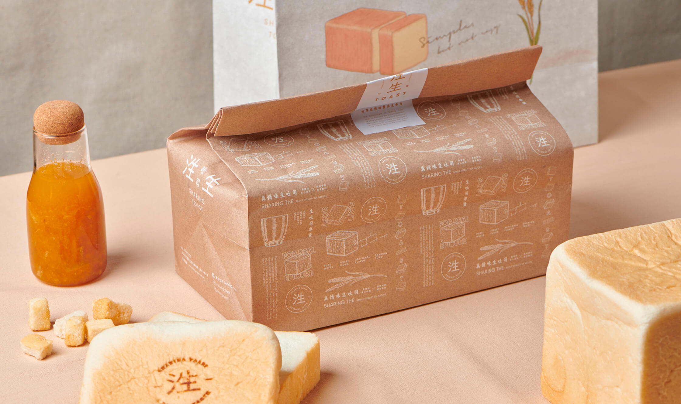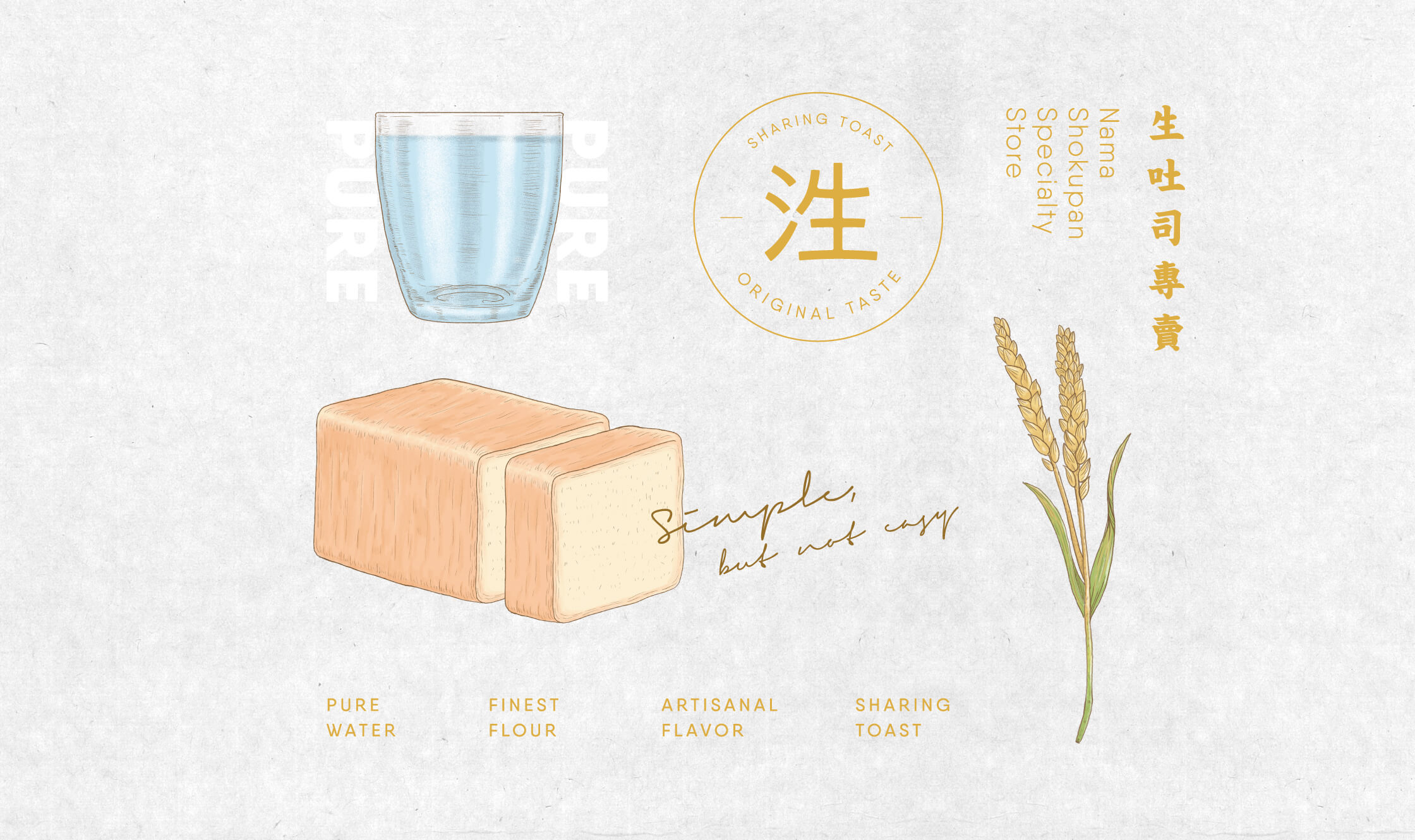 近年來台灣本地吹起了一陣"生吐司"的風潮,如何將源自於日本的特殊風味,轉化成本土民眾可接受味覺質地是這一次品牌的重要任務。良艮團隊先幫品牌命名為"泩生吐司",透過意味多水而滋潤的"泩"比喻生吐司與一般吐司不同的溫潤滑順口感。 透過團隊擅長的敘事方式,從包裝到室內的視覺規劃,以手繪的質感去一步一步的帶出品牌最單純的食材,讓消費者能夠體會到品牌所著重的原料本位調性。