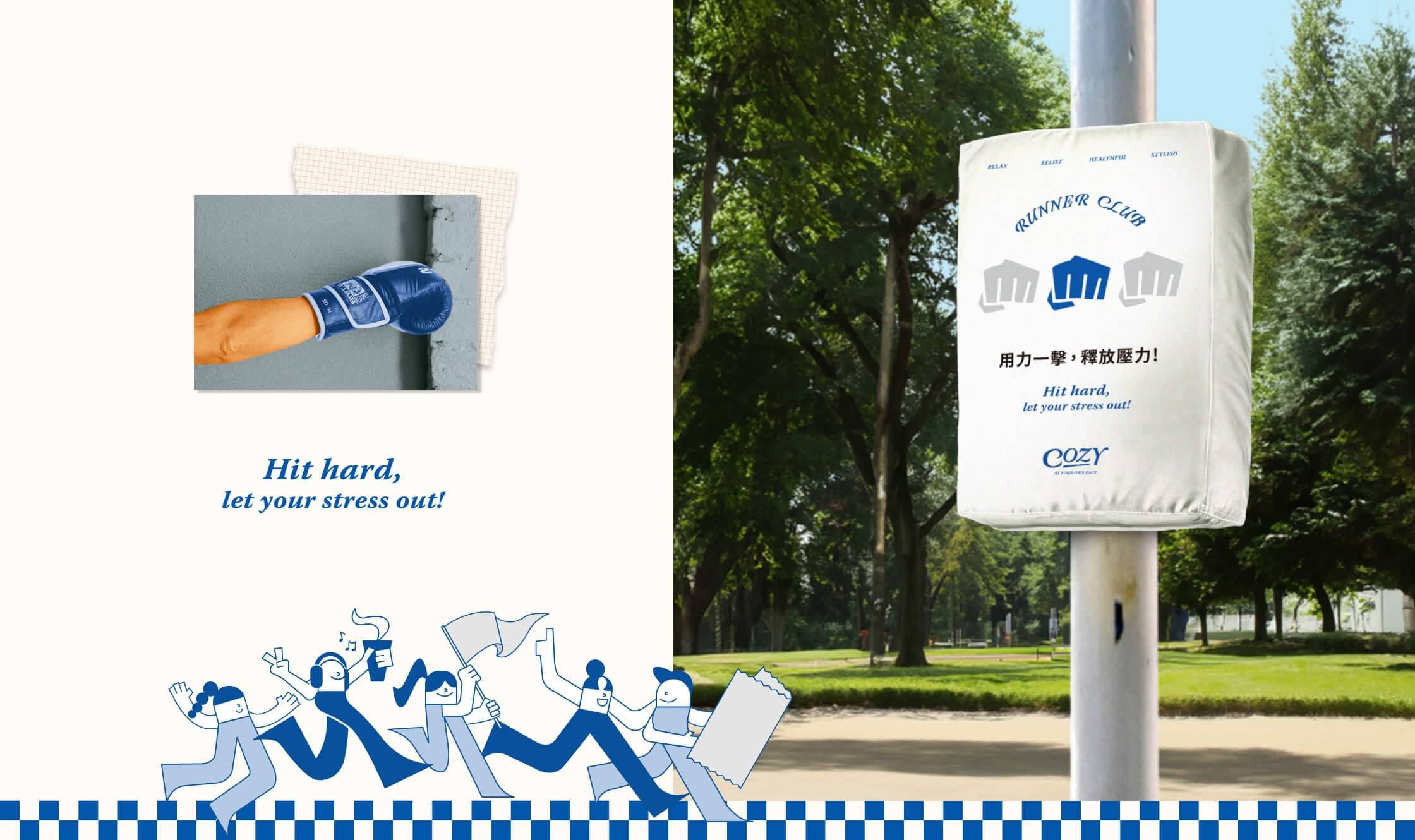 同時,主視覺也採用了一個假想的運動俱樂部為主題,整體規劃活動周邊的設計一致化,讓周邊備品擁有不同於其他的風格調性,使每個參與者體驗歡愉有趣的運動氛圍,就這樣邁開自己保持運動的第一步!